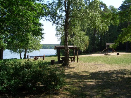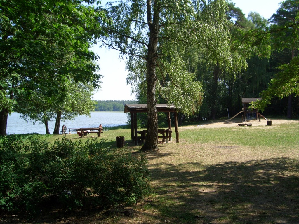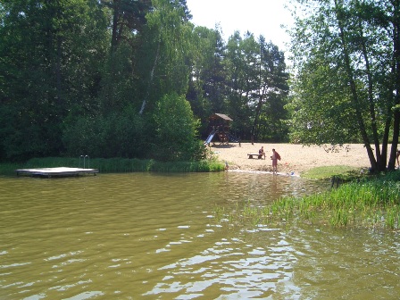 und der Badestrand am Moderfitzsee, ebenfalls mit Volleyball- und Kinderspielplatz