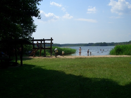 Der Badestrand am Haussee, der Badestrand am Stolpsee mit Volleyballplatz